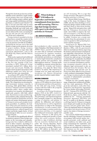 manufacturers have withdrawn from Viet- ing at FDI inflows in September and their business over the next one or two